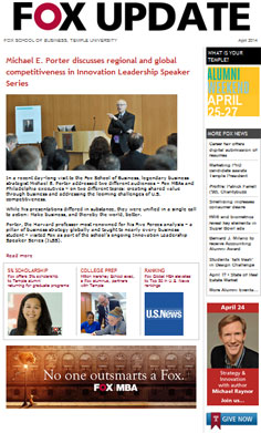 • Fox offers 5% scholarship to Temple alumni returning for graduate programs